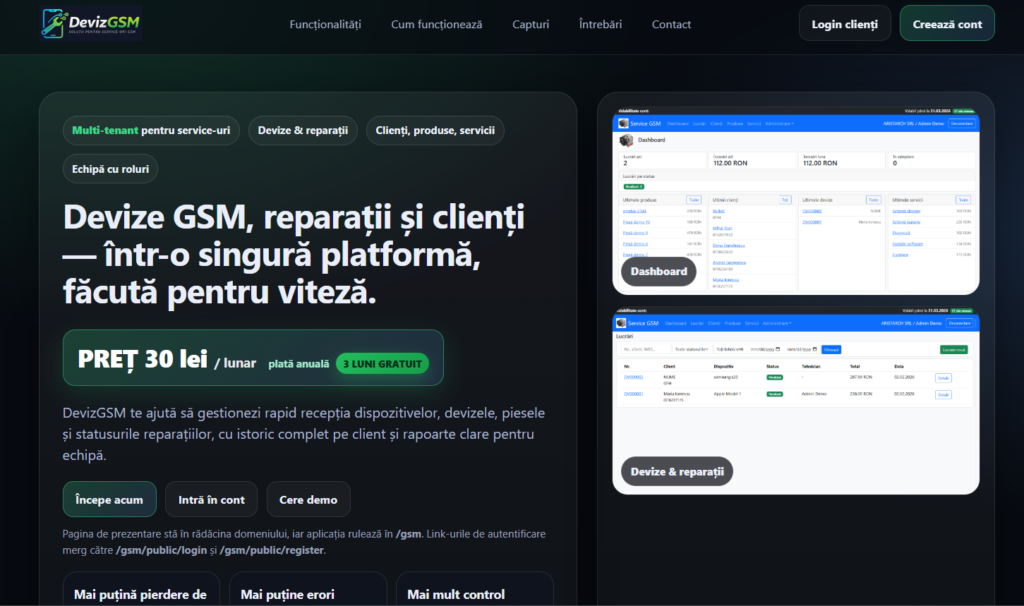 Accesează DevizGSM.ro sau contactează echipa SoftOK pentru activare și prezentare.